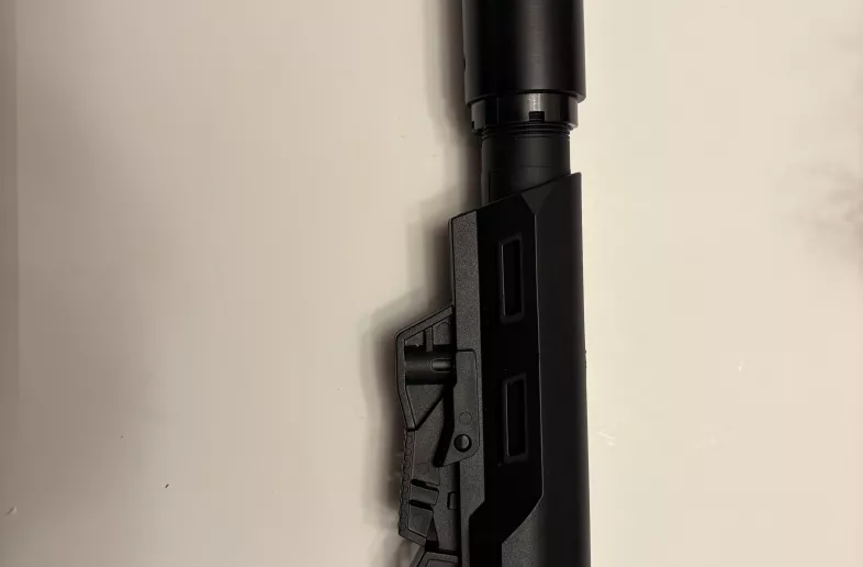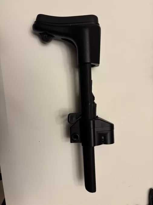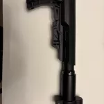 2 GSG-16 Or MP5 style stocks available today. The first is a collapsible on with smoother styling and better rubber on the back. The other is the AR buffer tube style. Both will fit the GSG-16 style rifles (both short and long barreled versions) and will most likely fit on the airsoft versions too. Prices are plus shipping, and feel free to check out my other listings to see if there are other things you’d like to make a package deal on.