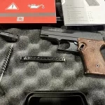 This pistol cycles 6mm Flobert blanks reliably and is commonly used for film production, training demonstrations, celebration firing, and safe starter-pistol applications. The example offered here includes the original case, manual, cleaning brush, magazine, and muzzle attachment—showing only light handling wear and excellent mechanical condition.