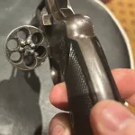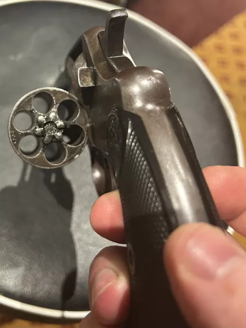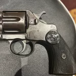 this was the very first swing out cylinder colt revolver. very nice revolver overall. Mechanics are very good with tight lock up. Bore is very nice with excellent rifling. Original finish with brown/plum patina. original grips in very good condition.