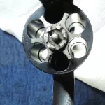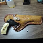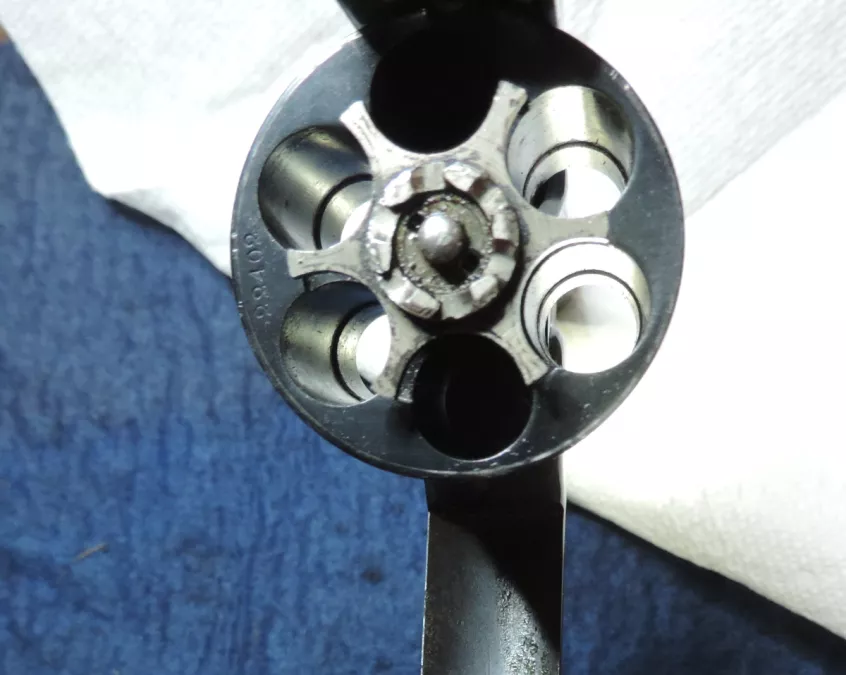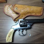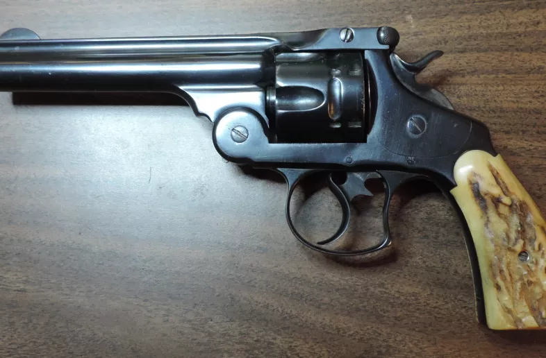 For your consideration, an exceptionally nice S&W 1st. Mod. DA in .44 Russian. This is an obvious re-blue and after market genuine stag grips have been fitted. Most importantly, the mechanics are excellent! Advance, timing, lock up, half-cock, and single and double action. Of note, there's no problem with "force off" which is a common issue with these old revolvers. The cylinder, frame, and barrel latch all have matching serial numbers. For whatever reason these 5"barrel models seem to be more desirable than the 6". I had originally thought to keep this one but I have a line on an exceptional New Mod.#3. The bore is very good but not perfect and I would conservatively rate it as an 8/10 and the chambers as a 9/10. It also comes with a decent holster. This should be an excellent shooter.