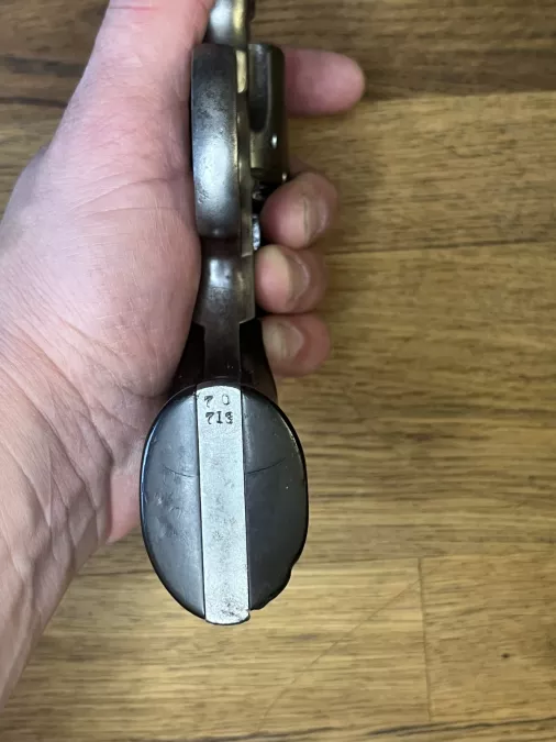 Has the 1895 patent date on the barrel so it has the upgraded lockup. This is the most modern revolver considered to be antique status in Canada.