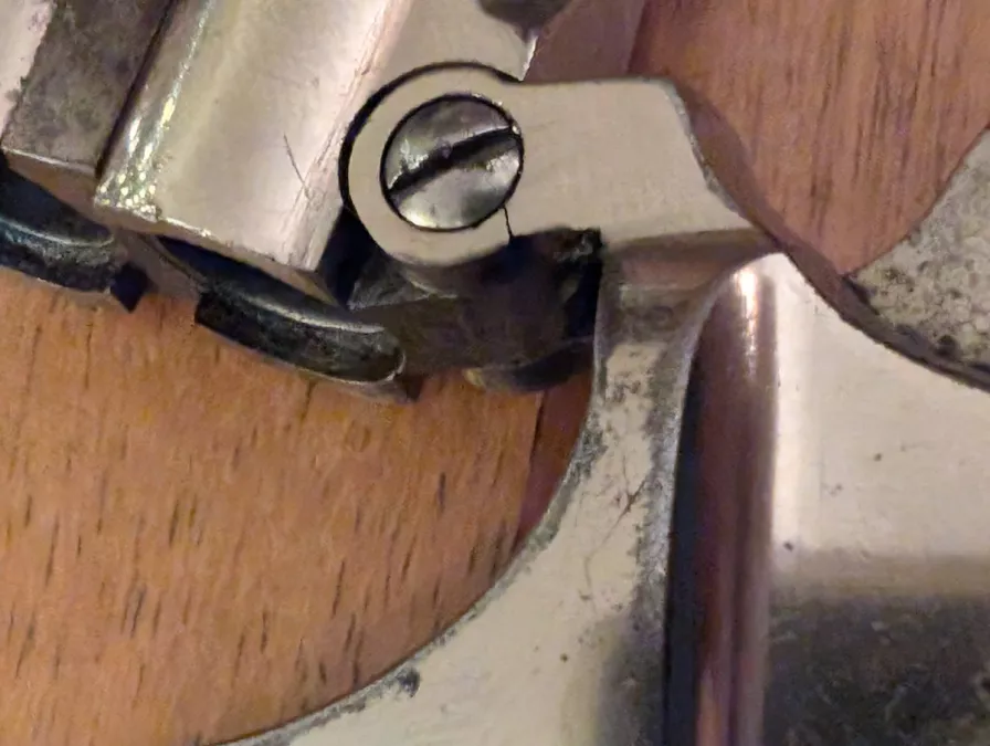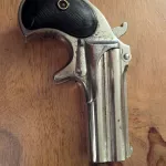 Fair to good bores with scattered pitting and lots of rifling. About 85% nickel finish, looks original to me. So do the grips which show only slight wear. Strong springs. Firing pin reciprocates like it's supposed to do. There is a fine crack on the hinge on the left side. This flaw is mostly a cosmetic one, it does not make the gun unsafe to fire.
