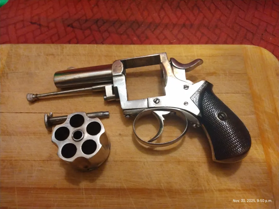 Belgian "British Bulldog", .44 Webley CF Revolver and the cylinder compatible with 44 Russian.