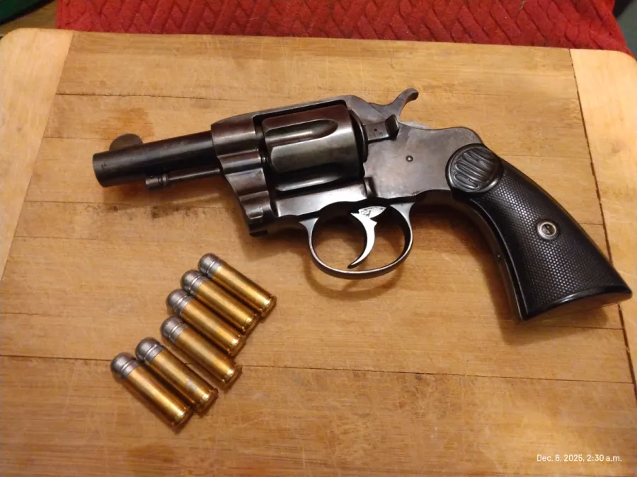 This model is a marked departure from previous Colt revolver designs, and would be produced in a few variants from 1889 until 1907, with some 330,000 made. Many were sold to the US military. It has a counter-clockwise rotating cylinder with locking slots on the back.