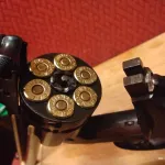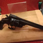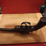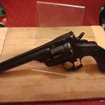 This one is in very good condition with longer 1 9/16 cylinder and can shoot both .44 Special and 44 Russian ammo. The action is strong and accurate, and the cylinder indexes and locks properly. The bore of the 6.5-inch barrel is quite good, with strong rifling. The black hard rubber grips are good and undamaged. Mechanically in excellent condition with proper timing and lockup. The latch is also solid with zero play. Extractor works as it should. SN 10438, very good overall.