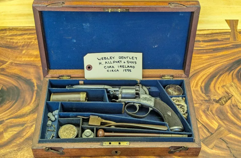 High Condition Cased Bentley Webley Percussion Revolver with Accessories