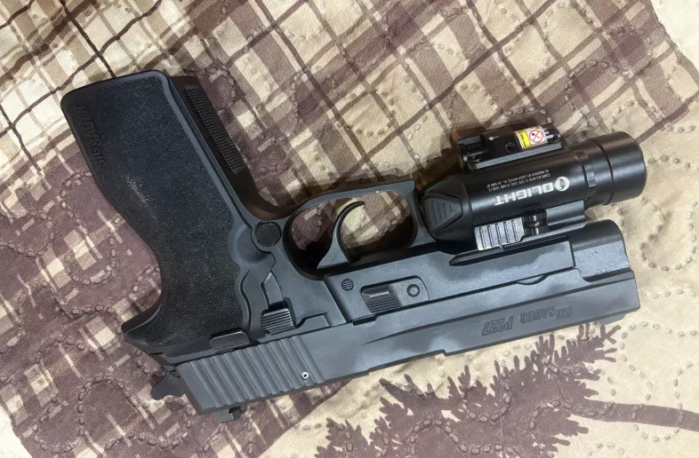 Must be a business class owner or handgun exception ONLY. Sig Sauer P227 in 40 cal with Olight flashlight/laser sight. 2 mags. I am no longer interested in owning handguns. Willing to sell all 5 for the price of 4.