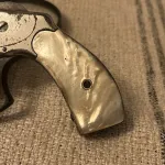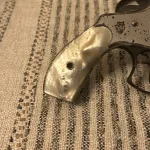 Smith & Wesson new model double action no 3 .This revolver still retains about 75% of the original nickel finish comes with a very nice set of pearl grips showing a little bit of were but no chips or cracks. The action functions very well in single or double action with good timing and lock up still lots of strong visible rifle but minor typical black powder pitting, it has a 6 inch barrel chambered in 44 Russian caliber as well as a long cylinder , 1-9/16” This is an revolver and you do not require PAL to purchase it. RCMP, FRT documents included.