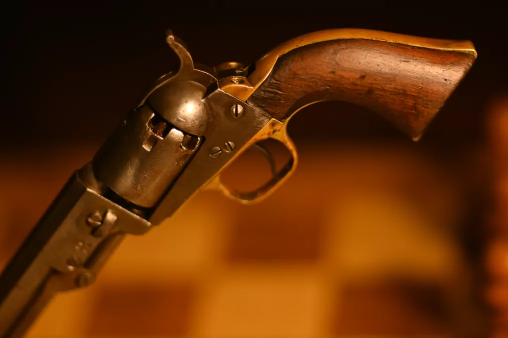 1849 Colt pocket revolver. .31 cal. Antique status. Good condition. Matching numbers on the frame, cylinder and trigger guard.
