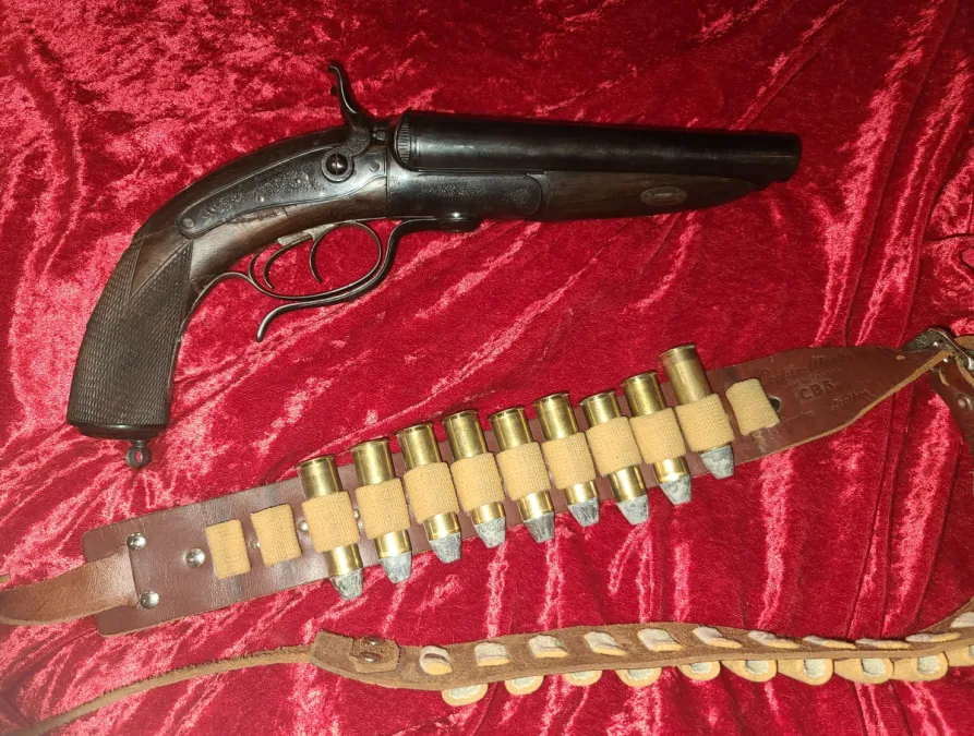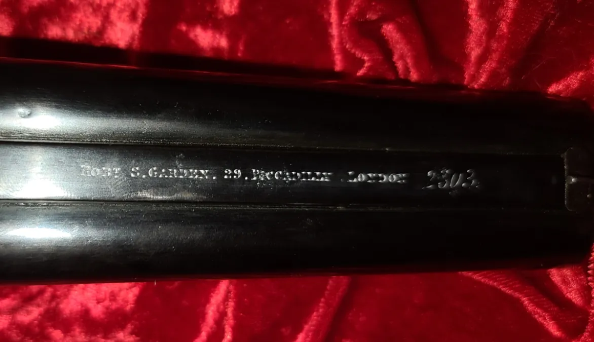 The pistol was manufactured by Robert S. Garden, 29 Piccadilly, London some time between 1864 and 1877. The Barrels are 6⅞", the load written down by the past owner was a 480 Grain bullet with 70 grains of Black Powder.