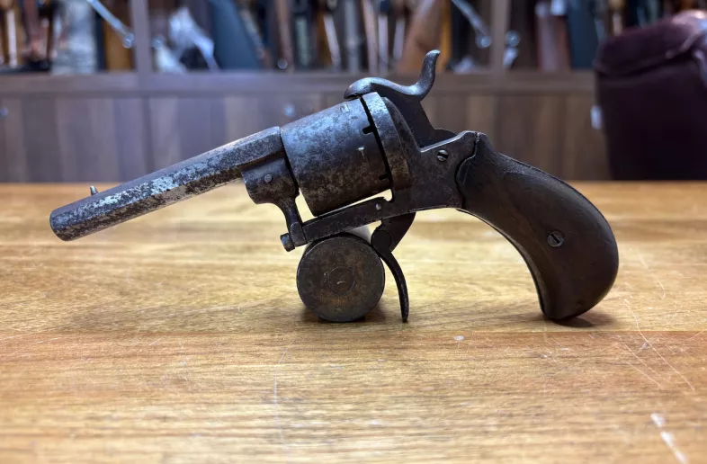 Selling/trading an antique pinfire revolver. Overall it's in fair shape and will require work and parts to be functional. Antique status, no PAL required, just proof of age. Appears to be Belgian in 9mm Pinfire. 3" octagon barrel, 6 shot. Steel shows light pits and rust throughout. Grips are in nice shape. Indexes in both double and single action but the hammer doesn't always cock in double action (cylinder still rotates). Bore is in rough shape with no rifling left. Missing extraction rod, has play between the cylinder and frame. Would be best as a wall hanger or for parts. Looking for $350 shipped. Insurance by request on buyer. Open to all trades. Can send more pictures upon request. Pm or text/call 204 795 2850 for more info.