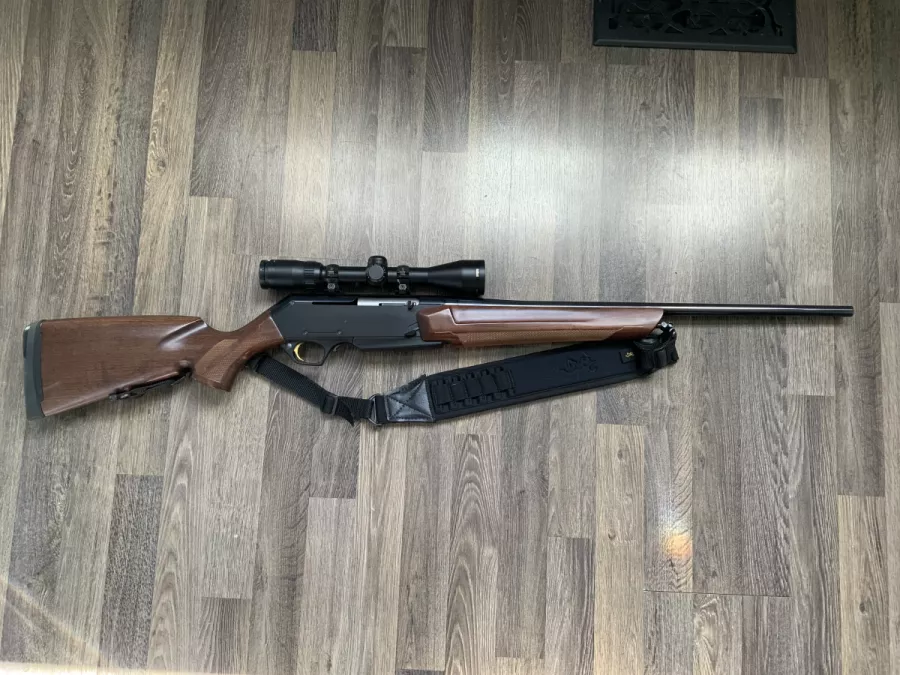 In excellent condition comes with a scope and quality sling, just tiny freckles on the bottom barrel.The latest MK 3 version builds on the previous iterations with contemporary styling, fine oil finish walnut, a precision alloy receiver and a hammer-forged barrel. The BAR features accuracy and performance that will make autoloading enthusiasts out of the most skeptical riflemen.