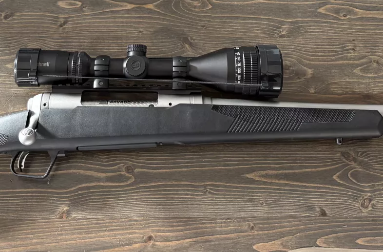 With Bushnell R3 6-18x50, Vortex Medium Rings on pic rail