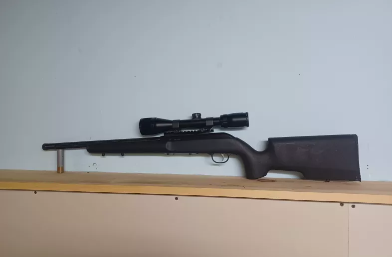 Selling a used Savage model 64 TR-SR 22lr semi automatic rifle, with a fluted & Threaded heavy barrel. Comes with a bushnell banner 4-12×40 scope, This is a used gun, so it does have some marks in the wood and light marks on the metal. Comes with one mag. Not shown in pictures.