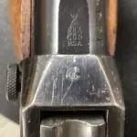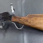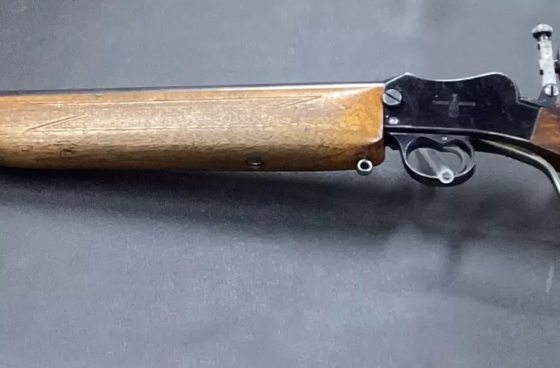 Canadian broad arrow marked BSA single shot martini action in 22LR with a 24” heavy barrel. Very good bore with strong rifling. Fully adjustable rear multi aperture sight and the front sight gives you a choice of post or peep with the flick of a wee lever. While displaying many character marks the rifle is in very good condition. Shipping by Expedited Parcel for cost. Cheers.