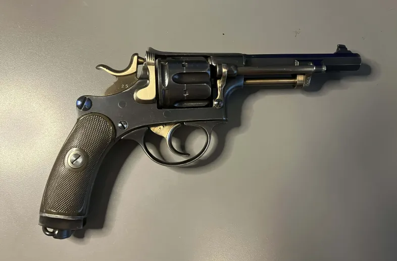 For sale is a beautiful museum quality 1882 revolver in excellent condition, you would have a hard time finding a better antique example in this kind of condition. This revolver has 99% original bluing with high luster on the strawed and nitro blued parts. Bore is bright and rifling is sharp and shows little signs of use. The lockup is very tight when the trigger is pulled as well. This gun can shoot .32 S&W and 7.5 Swiss ordnance ( google H&C reloading for 7.5 Swiss ordnance kit), fiochi also sells factory ammo for this gun.