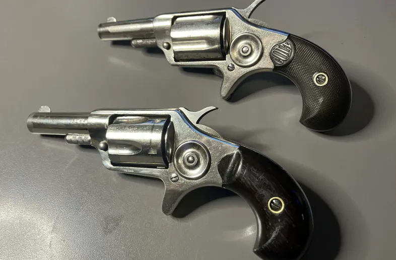 For sale is a pair of .32 RF colt newsline, first generation and a second generation (stops are in the back of cylinder on 2nd)
