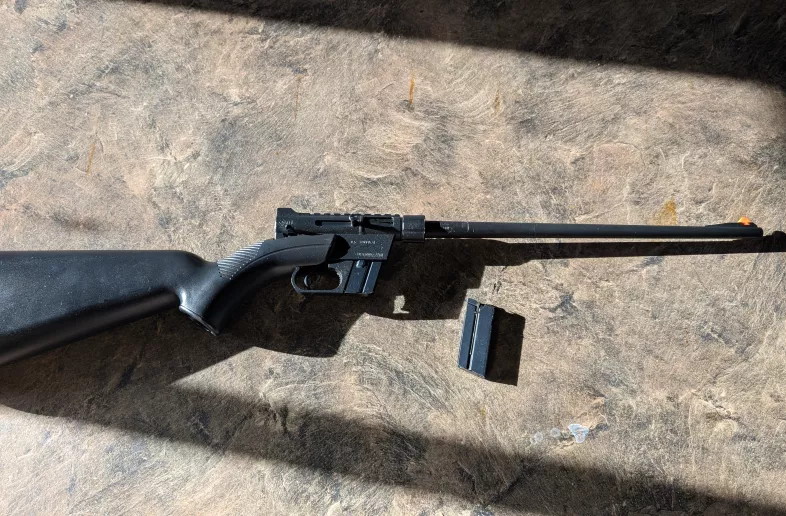 Henry US Survival AR-7 for sale. If you know, you know. This rifle I received on trade and had a blast shooting it in the backcountry. Super portable, lightweight and waterproof. This .22 LR rifle is designed for survival situations, featuring a unique design where the barrel, action, and two 8-round magazines store inside the stock. When broken down, the rifle is only 16.5 inches long, making it ideal for compact storage in backpacks.