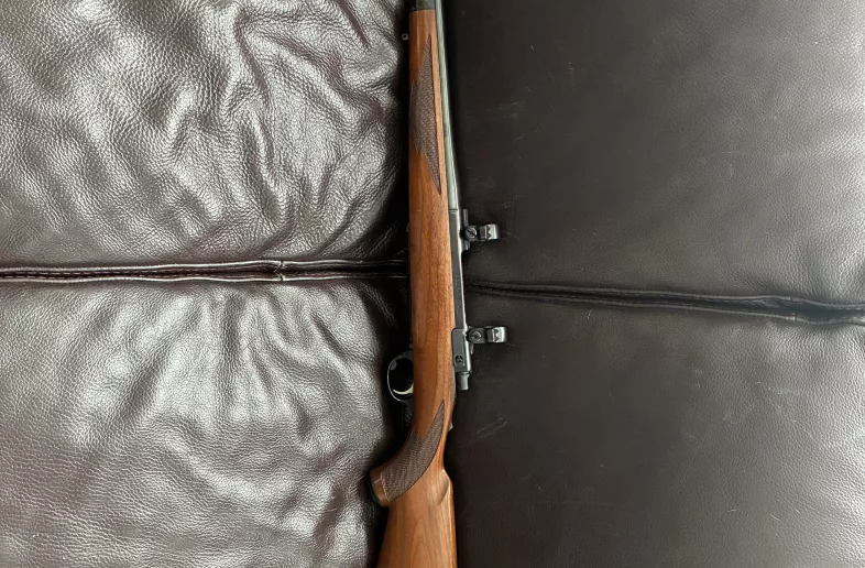 This rifle has been hunted with extensively and shows handling marks and a chip in the fore end as well as signs of the lacquer peeling. Shown in pics.