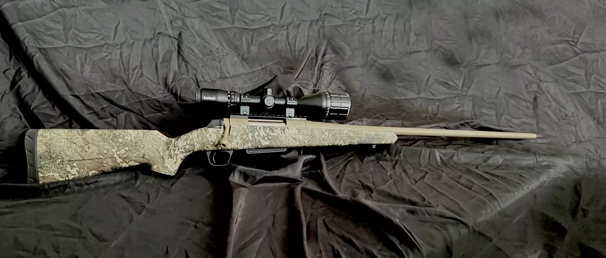 Winchester XPR with original camo stock. Finished in light brown factory cerakote. This is a beauty gun. It's pared up with a 7x18 Bushnell scope with paralax adjustment. Very low round count and has a perfectly rifled barrel in 300 Win Mag.