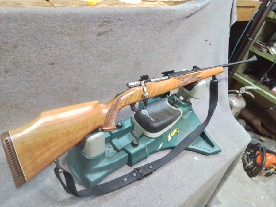 Voere 308 ,Austrian barrel, santa Barbara action, controlled round feed, I have it on good authority that this firearm is capable of shooting cloverleafs and in fact has done so. I bought it to turn over and never seemed to have the time to shoot it myself. The bore is bright and shiny, the action runs smoothly, and the trigger is decent, the stock is very nice, the pictures don't do it justice, the whole thing seems very lightly used