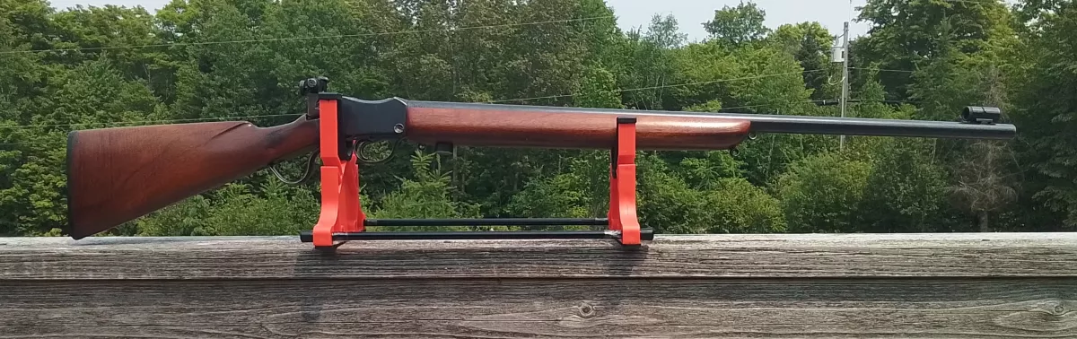 Beautiful BSA Martini Henry 12/15 falling block in 22lr with gorgeous tiger striped original wood stock. Parker Hale adjustable sights, hood front sight uses interchangeable inserts (1 included) original sling mounts, original insert holder on forearm, 29" bull barrel. This rifle is in exceptional condition and extremely accurate.