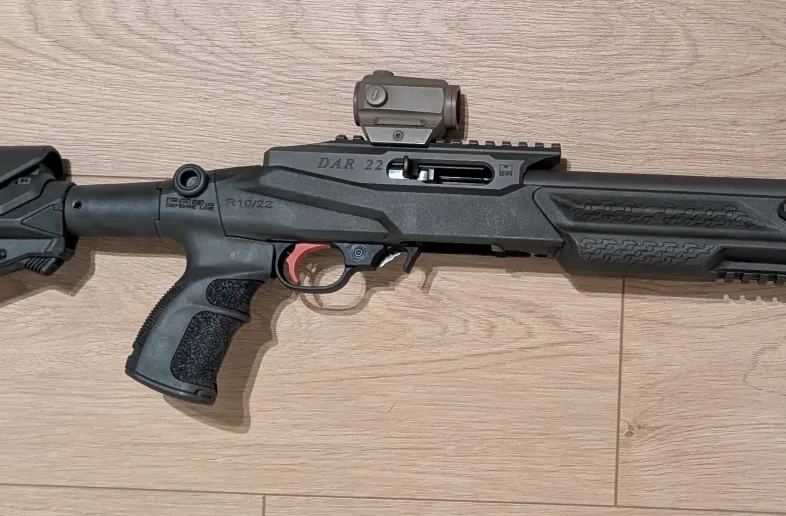 Dlask 10/22 receiver and 8.5" barrel with linear compensator with matching od green cerakote in excellent condition. Fab stock with some washed in paint texture. Holosun HS403B 2moa. New Kidd performance extractor. Extra polished guide rail slide and Kidd performance return spring package and oversized slide handle currently not installed. Auto bolt release mod, rubber rear buffer. Currently fitted with a bx trigger pack. I can ship it with a stock trigger pack that has a stage 2 brimstone job. Should be polished to about 3lbs very tight pull and reset. Volquestran trigger and extended mag release in matching od green. The only problem with the brimstone pack was I noticed the plunger spring is too weak and it started stove piping on me when mags jiggled. That pack Needs a beefier plunger spring ($20)to hold mags tighter in place so I have been running the bx pack lately and it's running smooth. Had other priorities but yeah I can ship with either trigger pack. Both are great.
