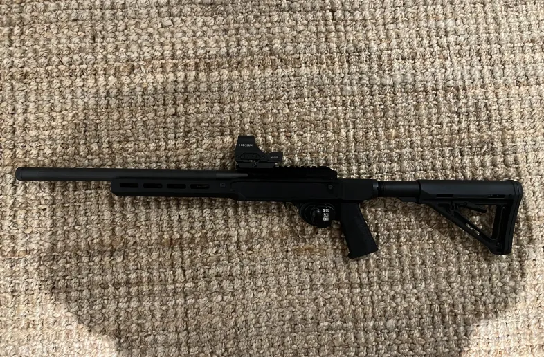 Hi there. I am selling my SBI C71 rifle. It is 22LR caliber with a 16.5” carbon fiber barrel. Very accurate rimfire rifle perfect for target and competition shooting. Very lightweight also. This is a semi-automatic rifle, I have used normal 10/22 mags as well as high capacity TUFF-22 mags as they are compatible (25rds). Optic is not included. Let me know if you have any questions. I purchased this brand new in May 2025. Barely used it and I am selling to cover some medical bills/medication unfortunately.