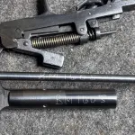 * The wood handguard on the gas tube shows wear: approximately half of the shellac has lifted, and there is a small chip in the wood 1cm size.