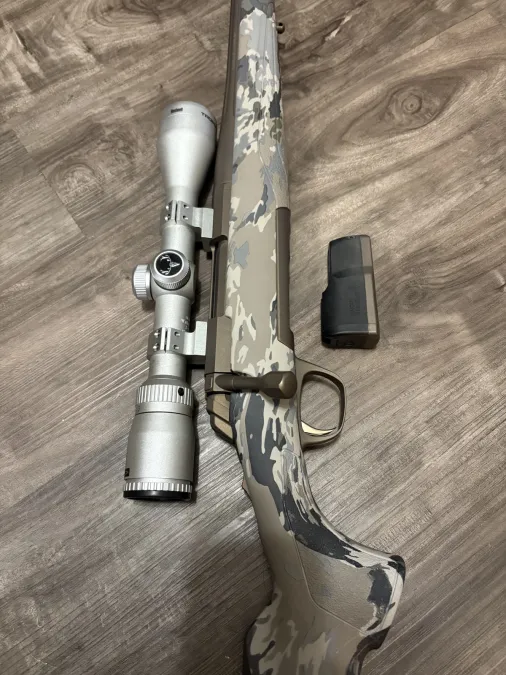 New 243 browning x-bolt hells canyon ovix camo with fluted barrel and muzzle break and trophy silver scope and rings , never fired just mounted , trades for other rifles welcome, I priced this rifle well below cost just to sell faster as i am looking to purchase something without a muzzle break ,thanks for looking