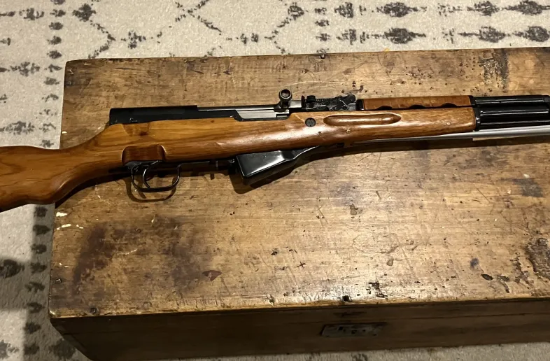 SKS “French Tickler” like new still in cosmoline, numbers matching 7.62x39