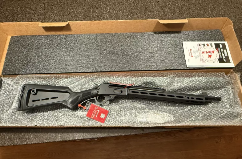 Brand new in box Marlin Dark 336 in 30-30. Rifle is unfired, action is buttery and sights are straight. Handles beautifully.