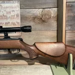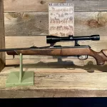Very nice Krico in 7x64. Adjustable set dual trigger, Hertel and Reuss 2 3/4-10 scope mounted on German claw mounts, smooth as butter jeweled bolt. Complete iron sights, hooded front sight. Bore is in very good condition. Unmolested stock in very nice condition, Rosewood forend tip and grip cap with inlay, palm swell, checkering is nice and crisp. Limbsaver recoil pad professionally attached. few light scratches a small dent.(pictured). The blueing is in very good condition. Will consider trade for Henry Homesteader.