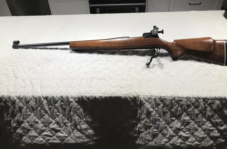 Enfield Target Rifle. P-17 Remington action. Single shot in .308 caliber. LBS heavy barrel. 28". 1/14 twist. AJP rear sight mode T.Z. 3/53. AJP front globe sight. Extremely accurate. Good bore. Loves 155 gr Hornady eld with Varget powder. Wood is in very good shape with some marks but no cracks. Parker Hale Front hand stop rail. Thinning the herd. Willing to trade plus cash for a scope.