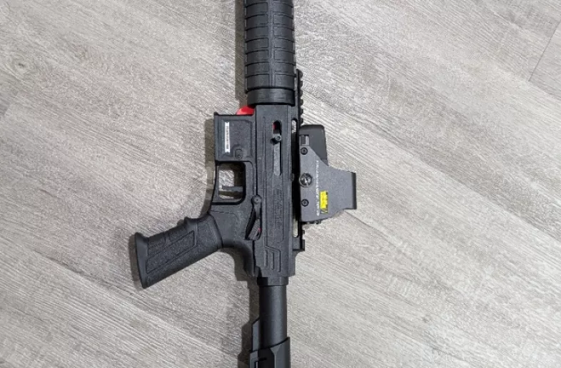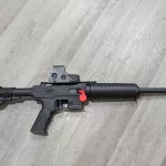 I bought this Rock Island Armoury TM-22 Feather about a month ago and put a red dot sight on it. It runs flawlessly and has only about 50 rounds through it. It comes with the red dot sight. It also comes with the original front sight and carry handle. I still have the box, the manual, and the little wrench it came with.