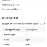 Savage 64 F / FXP / 64F New In Box W/ Scope