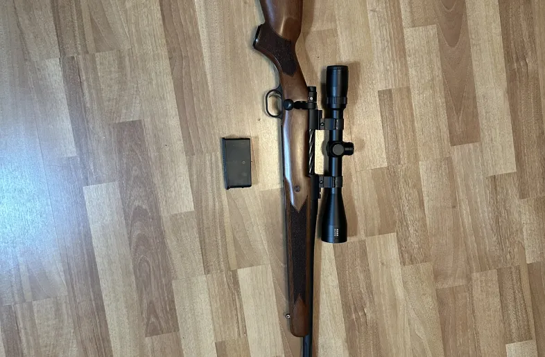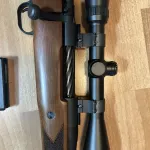 Mossberg Patriot .270. Wood stock, magazine, fluted barrel and fluted bolt. Bushnell Elite 4500 6x25x44.