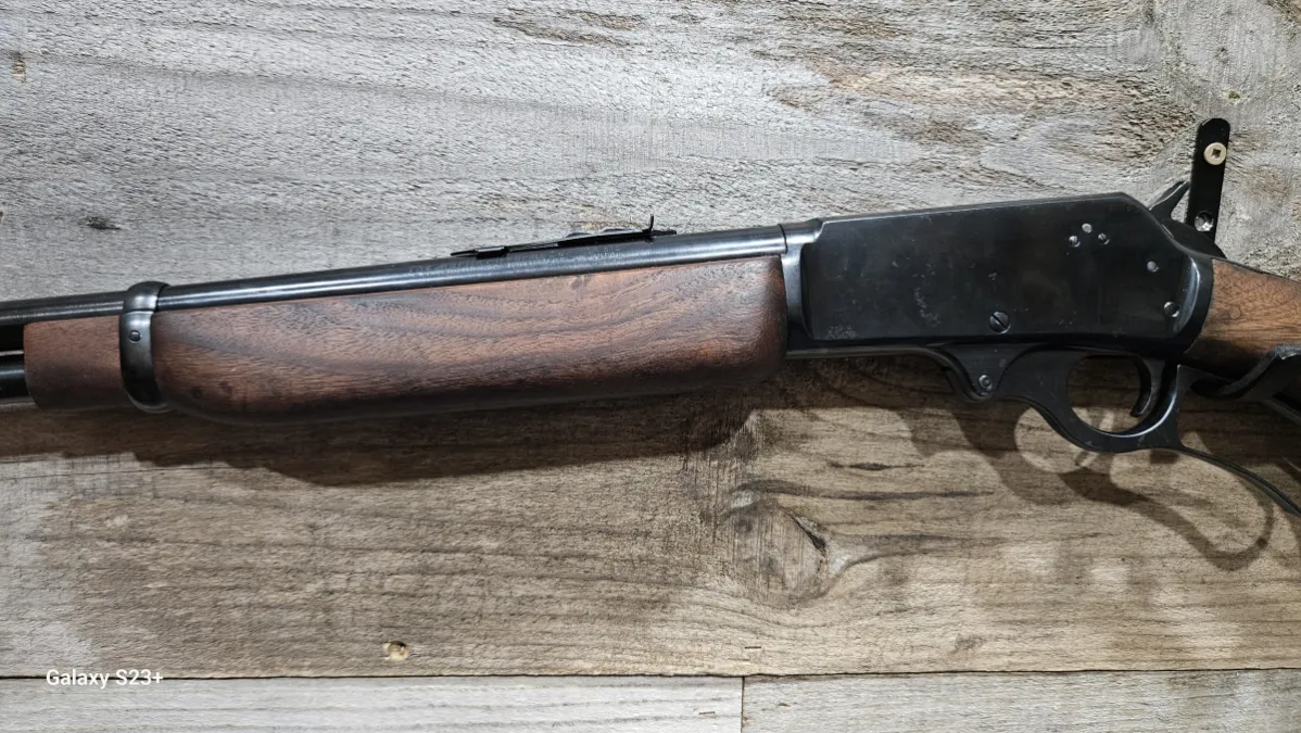 I have a Marlin Model 336 waffle top rifle chambered in 30 30 win. This rifle has been professionally hot blued and the stocks have been refinished. The butt stock had a small cracks so it was pinned with wooden dowels. Looks very nice.