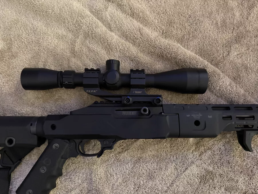 Heavy fluted barrel with threads and ported muzzel brake. Burris Pepe scope mount, leupold ar 3-9x40 scope. Extended coming handle, 2 piece black alloy Midwest industries chassi with ventilated forearm, short rails on left and right with tactical flashlight. Texted hand grip on bottom, black polymer magpie prs gen 3 but stock with adjustable cheek rest and recoil pad. Custom internal action. Extended mag relaease and auto bolt realease.