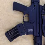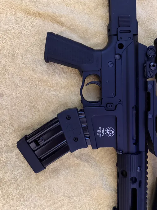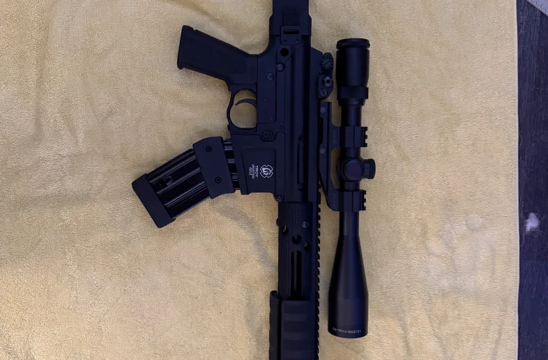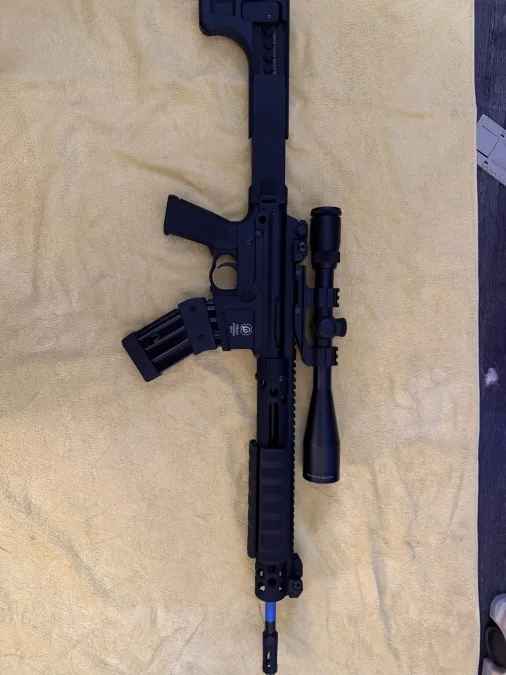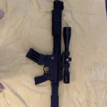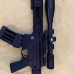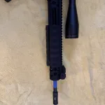 Beautiful Troy pump action ar. Non-restricted in Canada. Burris p.e.p.r scope mount with Bushnell legend ultra hd 4.5x14x zoom. 2 mags mag wedged together, 10 rounds each. Battle iron sights also.