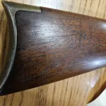THIS RIFLE, DATED TO 1900, HAS A 23 1/2" BARREL AND A 41 1/2-INCH OVERALL LENGTH AND FEATURES A BRIGHT BORE WITH SUBSTANTIAL RIFLING. THE WOODEN STOCK IS WELL-MAINTAINED, SOLID, AND FREE OF CRACKS. IT IS EQUIPPED WITH A STEEL CRESCENT BUTT PLATE, AS WELL AS FRONT AND REAR SIGHTS THAT INCLUDE WINCHESTER FLAT TOP AND BLADE SIGHTS.
