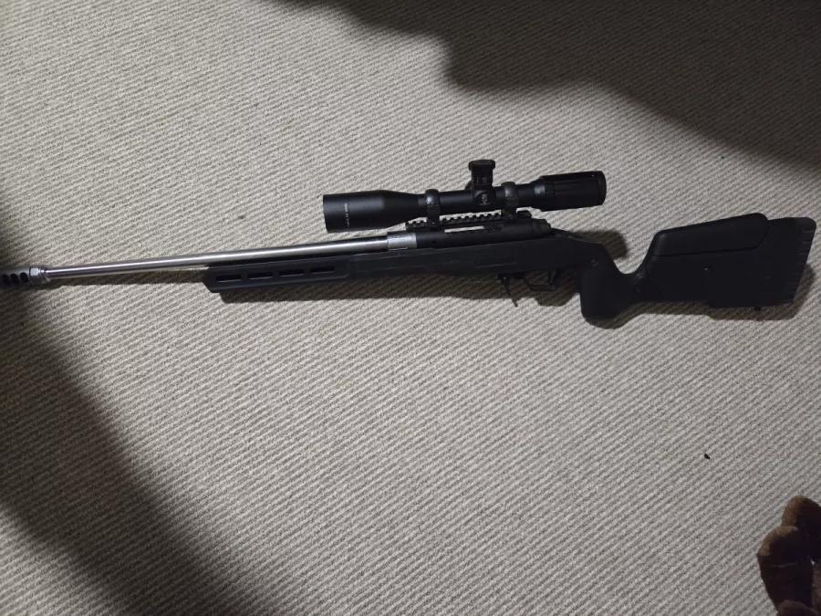 22 creedmoor built out of a savage action, upgraded bolt and bolt handle from precision gauge and tool, timney trigger IBI barrel 18", 1/8 twist rate turned down to reduce weight with an IBI tactical 3 gill brake. Build put into MDT field stock. Alberta tactical rail up top and 3rd MDT AICS Magazine. Will come with about 40 loaded rounds with 77gr tipped matchkings (bullet ive found it shoots best), some extra brass and a set of hornady reloading dies. Prefer local sale. Willing to consider trade for leica/swaro/ revic rangefinding binoculars, prs 22lr, nightforce mils scopes ***SCOPE NOT INCLUDED*** Open to offers.