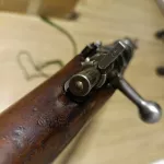 Fully intact with visible numbers matching 1895 Chilean made in Germany by Ludwig leowe . The rifle is fully complete with cleaning rod and bayonet. The rifle serial number is G7097 and the bayonet is G7059. They came together and it is possible it was a mix up at the factory as they are from the same batch. Very accurate 7mm Mauser