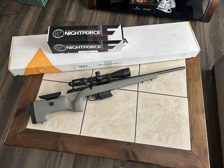 Tikka upr 6.5 creedmoor, less then 20 rounds fired to sight in. Like new condition. Asking $2000 rifle only including shipping. Would sell whole package for $3750 including scope and rings. Scope is Nightforce shv 4-14x50 f1 m rad reticle. Rings are vortex pro rings. Whole package worth about $4500 with taxes.