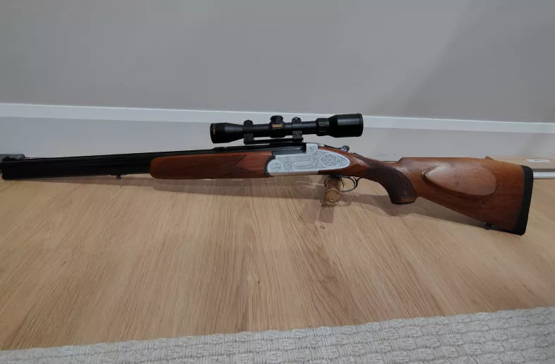 Antonio Zoli Combination gun 12ga/ 222 Remington. Very good condition, nice wood. Folding rear sight. Comes with Bushnell Legend scope & base, and a Redding FL 2 die set.