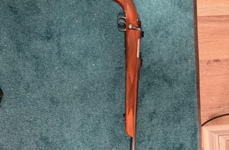 It has been rebarrelled (medium) which is 24 inches long. The bluing shows no wear. The walnut? stock has a nice finish and a smooth cheekpiece and without any noticeable scratches, nicks or dents. Comes equipped with weaver bases.