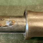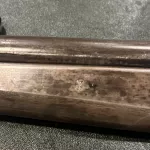 Inlaid into the right side of the stock is a period silver name plate engraved “C. Carmichael,” showing genuine age-toning and correct silver oxidation consistent with early professional-duty customization. It should be noted that the buttstock is a period-correct old replacement, likely installed by the rifle’s original user during its service life; its walnut material, fit, finish, and wear patterns all support this. The forearm, however, is a later replacement and does not belong to the rifle’s original production period.