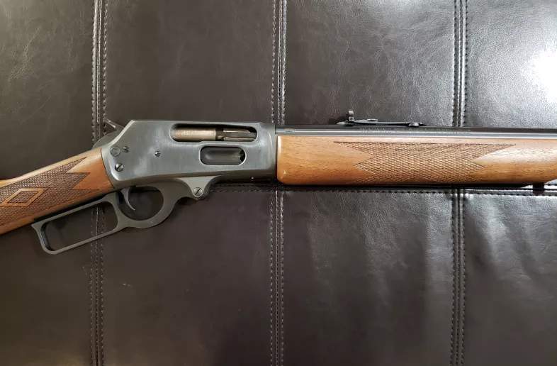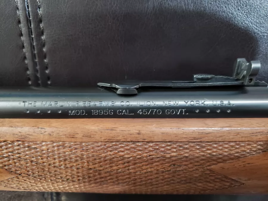 For sale is a Marlin 1895 G (Guide Model) lever-action rifle in .45-70 Govt. This model has a straight grip walnut stock & forend (w/ checkering), and blued metal finish. It has a drilled and tapped receiver (from the factory) - for mounting a scope. It also has a hooded front sight. It is in great condition with low round count (less than 100).
