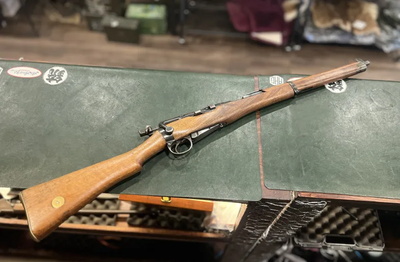 As with most surviving L.E.C. carbines, this rifle was sporterized decades ago and later carefully restored. The following are modern reproduction parts commonly used in such restorations: