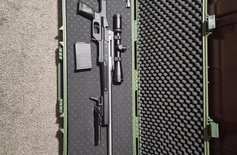 MDT Oryx chassis, MDT GRNDPOD bi-pod and ten rnd mag. Comes with buttpad spacers.